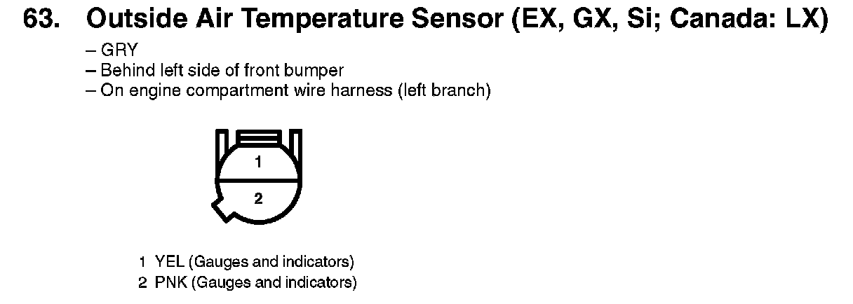 63. Outside Air Temperature Sensor (EX, GX, Si; Canada: LX):