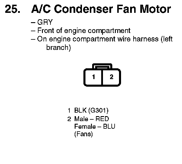 25. A/C Condenser Fan Motor: