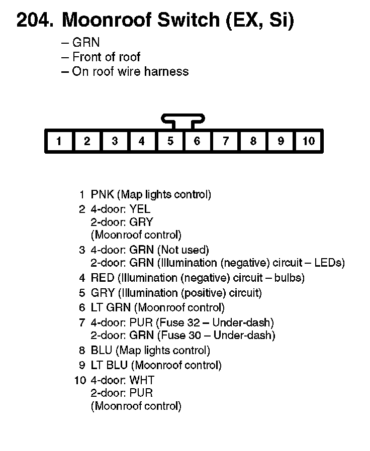 204. Moonroof Switch (EX, Si):