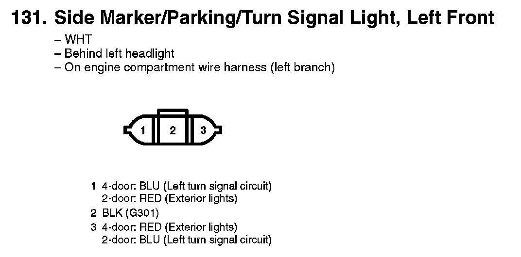 131. Side Marker/Parking/Turn Signal Light, Left Front: