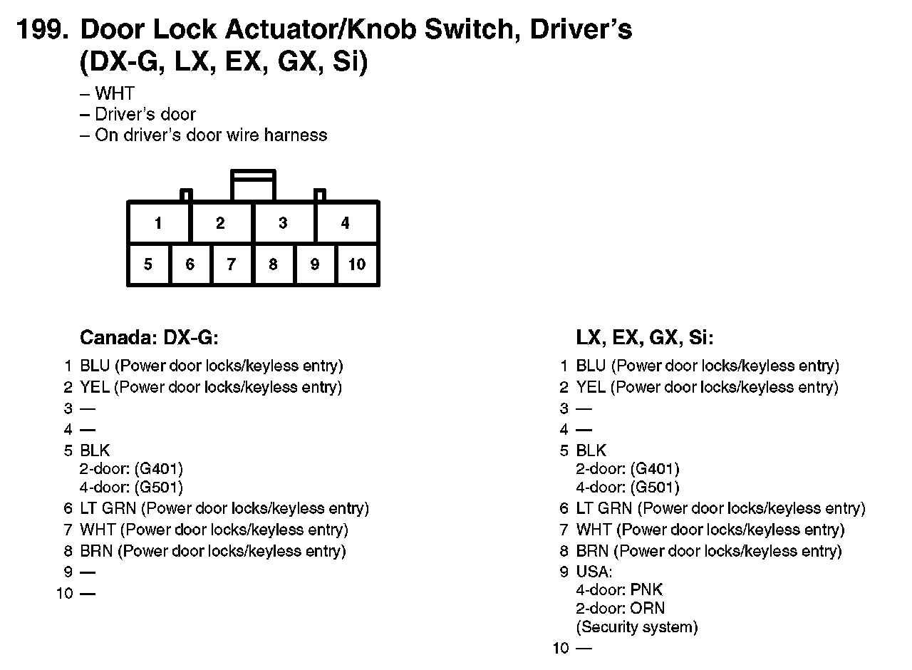 199. Door Lock Actuator/Knob Switch, Driver's (DX-G, LX, EX, GX, Si):