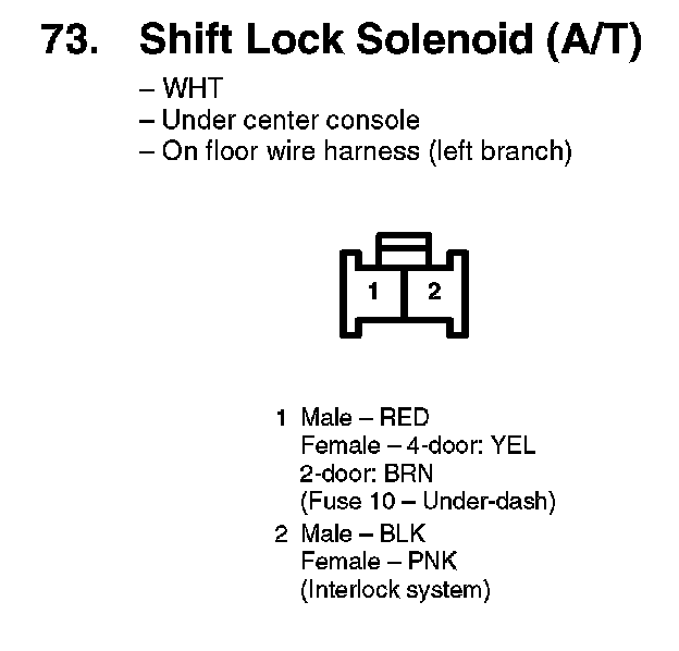 73. Shift Lock Solenoid (A/T):