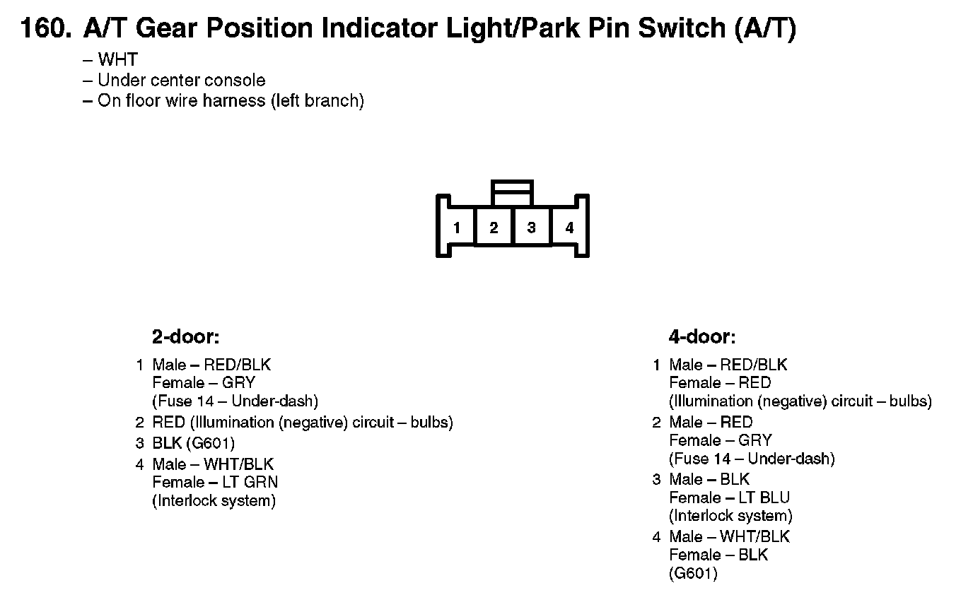 160. A/T Gear Position Indicator Light/Park Pin Switch (A/T):