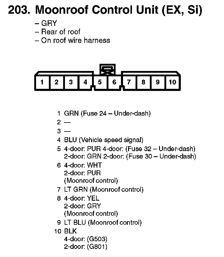 203. Moonroof Control Unit (EX, Si):