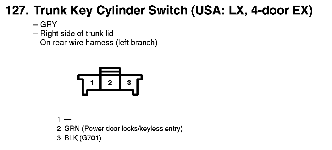 127. Trunk Key Cylinder Switch (USA: LX, 4-door EX):