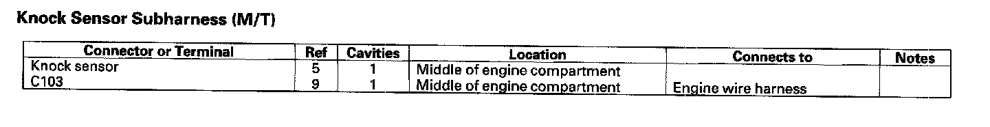 Knock Sensor Subharness (M/T):