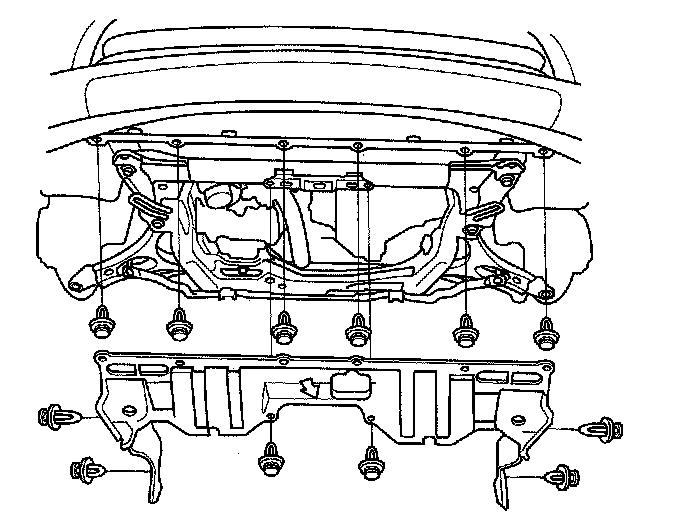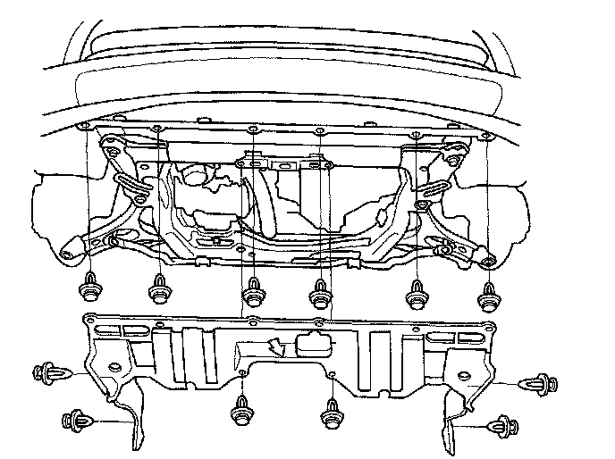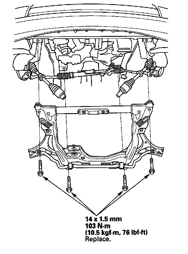 15. Tighten the new front subframe body mount bracket mounting bolts on both sides.