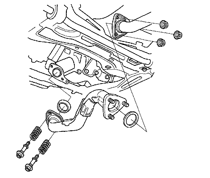 48. Loosen the front subframe body mount bracket mounting bolts (A) on both sides.