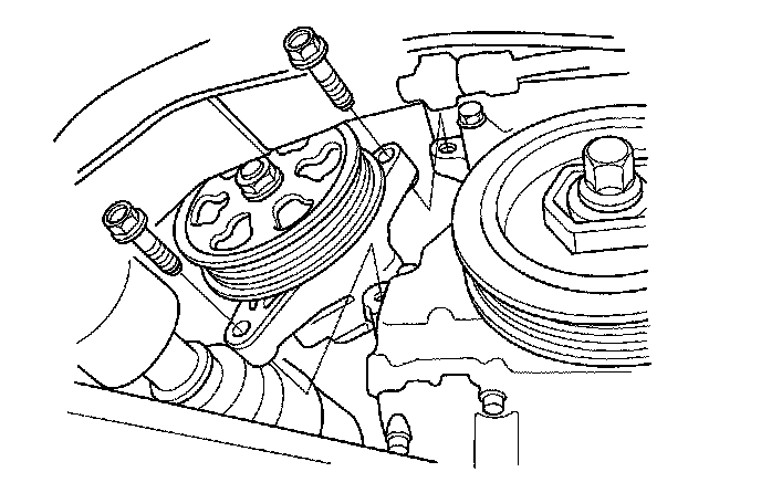 32. Remove the power steering (P/S) pump without disconnecting the P/S hoses from the pump.