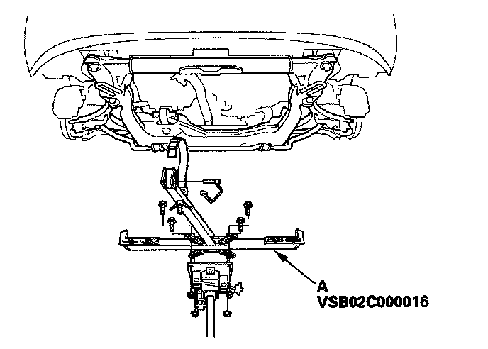 11. Using the front subframe adapter (A) and a jack, raise the front subframe up to body.