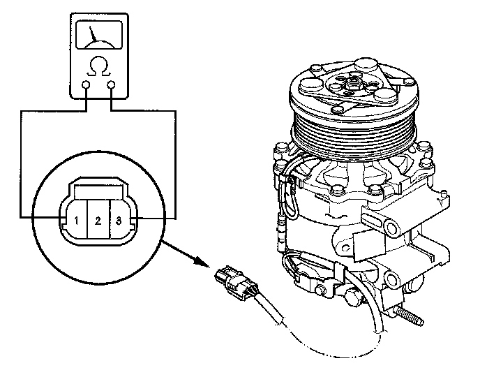 4. Check for continuity between the A/C compressor clutch connector NO.1 and No. 3. If there is no continuity, replace the thermal protector.