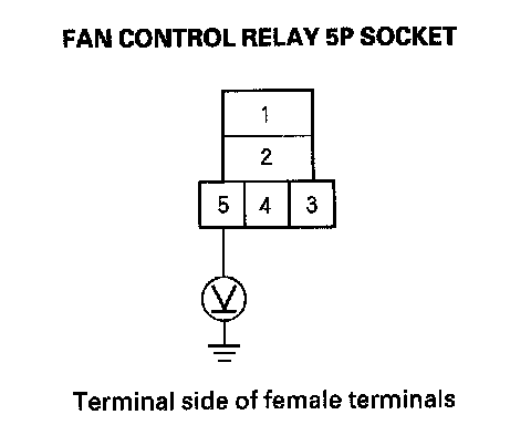 4. Measure the voltage between the fan control relay 5P socket terminal No. 5 and body ground.