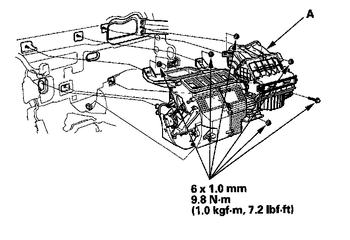Heater Unit/Core ReplacementSRS components are located in this area. Review the SRS component locations, and the precautions and procedures before doing repairs or service.