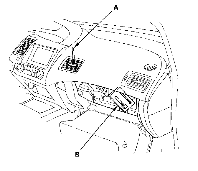 3. Open the glove box. Remove the glove box stop on each side, then let the glove box hang down.