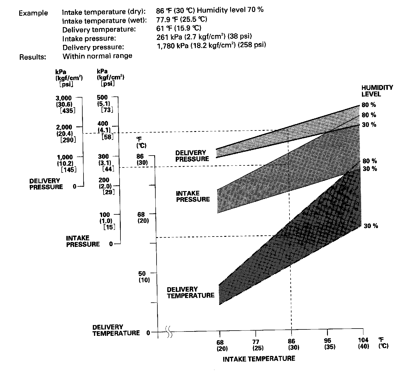 - Mark the intake temperature (ambient air temperature) along the bottom line.