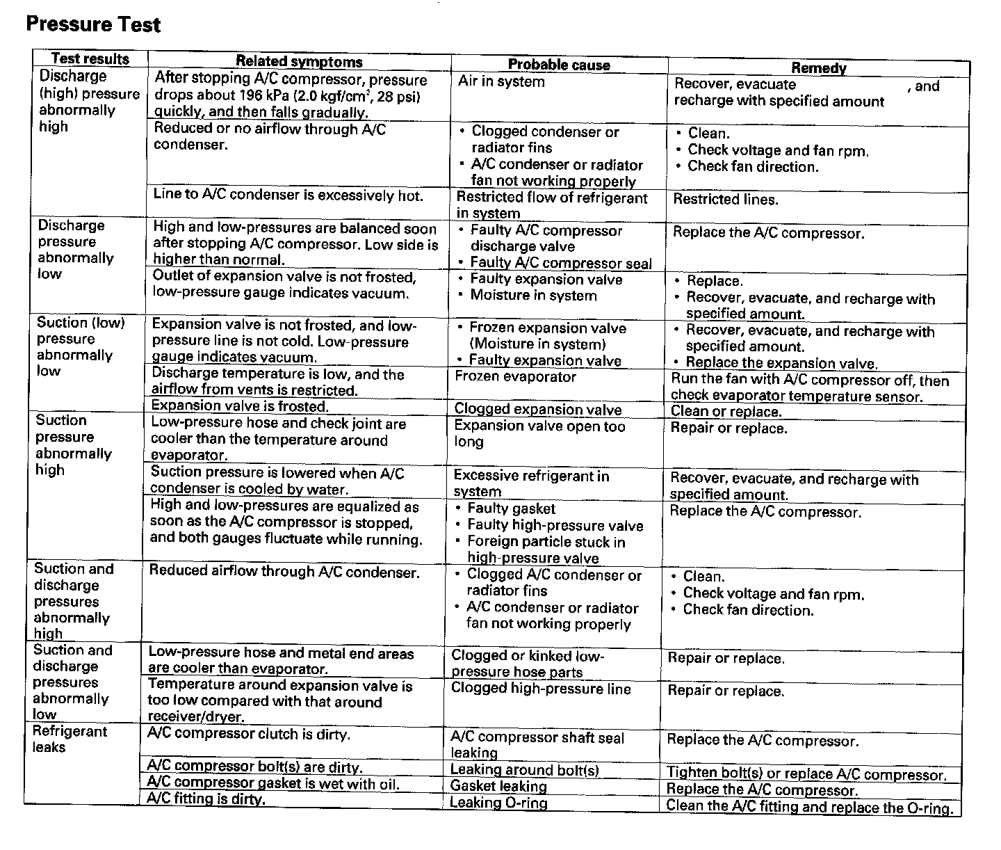 - Do not breathe refrigerant or vapor. The performance test will help determine if the A/C system is operating within specifications.