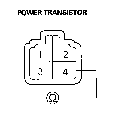 3. Measure the resistance between the No. 3 and No. 4 terminals of the power transistor. It should be about 1.5 kohms.