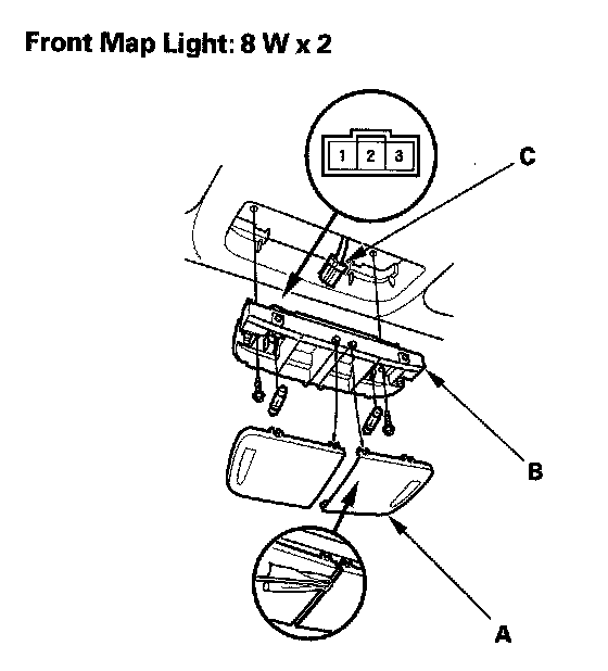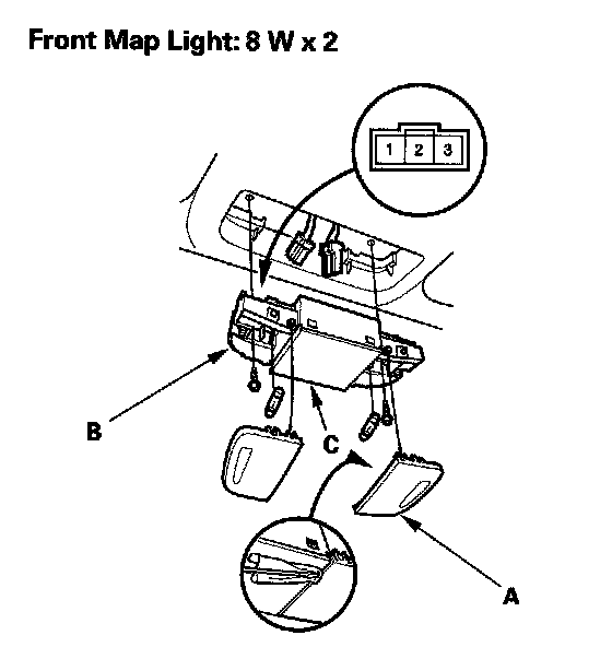 4. Disconnect the 3P connector (C) from the map lights.