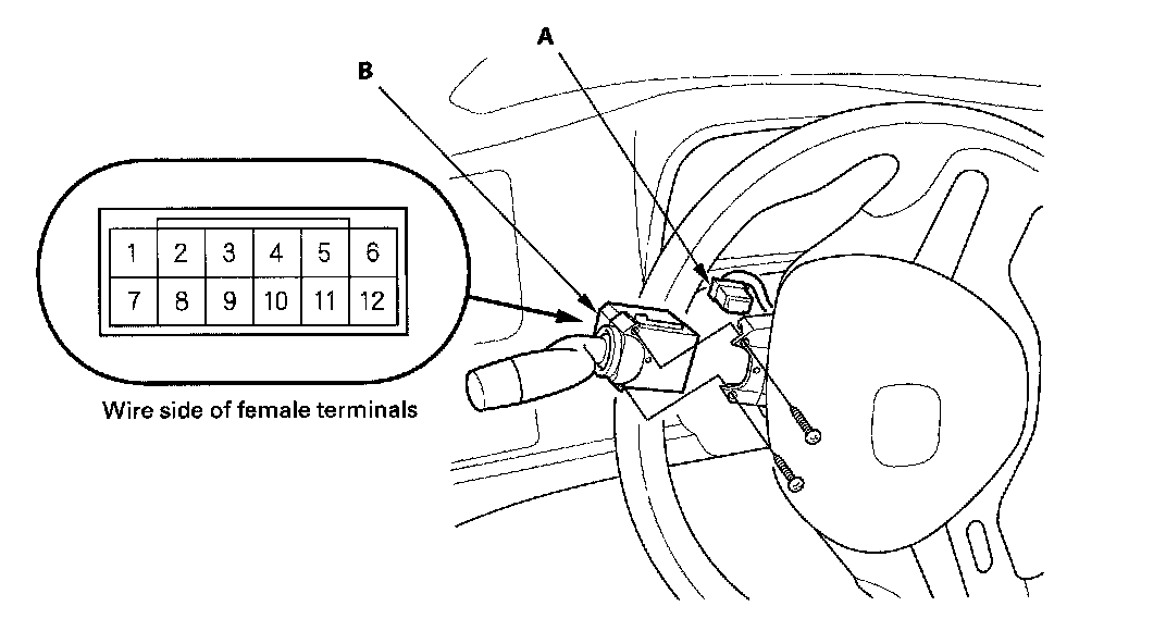 3. Disconnect the 12P connector (A) from the combination light switch (B).