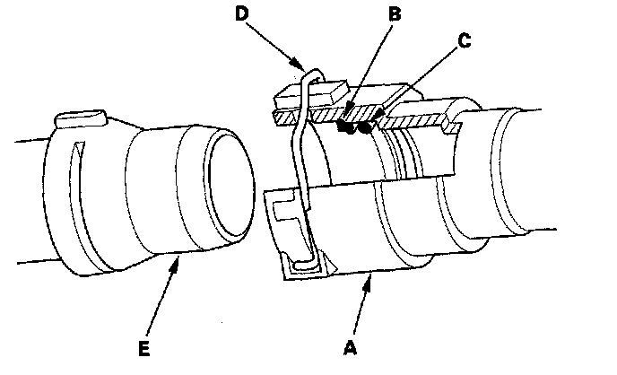 1. Check the quick connector (A) and set ring (B) for cracks or damage. If the connector and/or set ring are cracked or damaged, replace the connector.