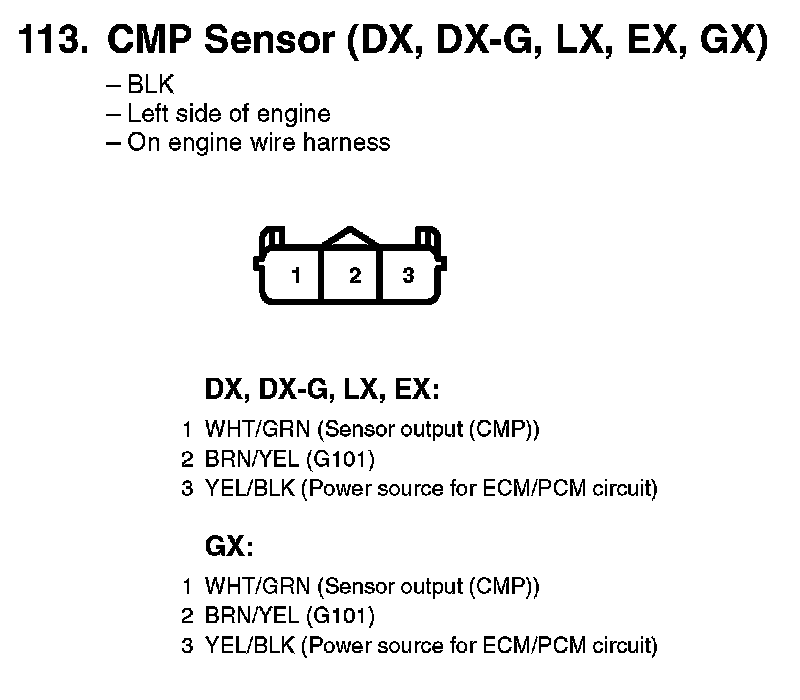 113. CMP Sensor (DX, DX-G, LX, EX, GX):