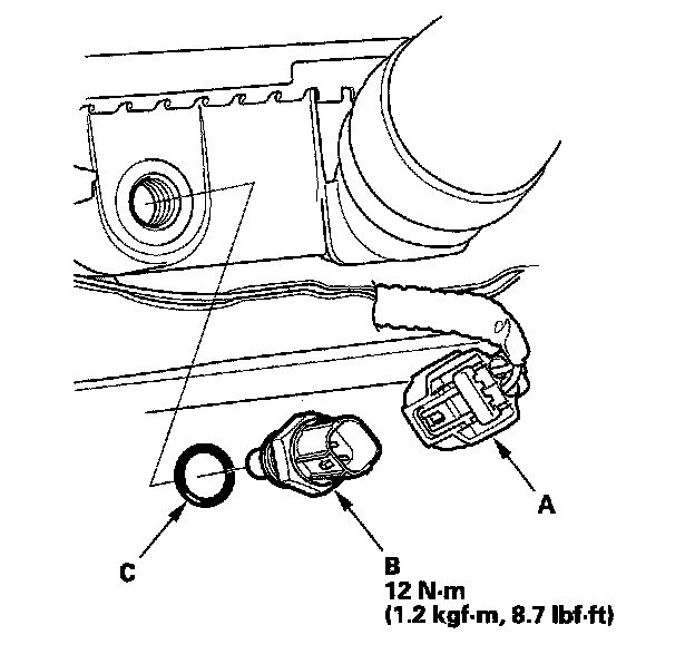 5. Install the parts in the reverse order of removal with a new O-ring (C), then refill the radiator with engine coolant.