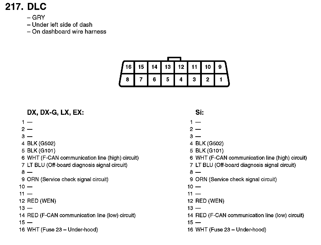 Data Link Connector: Diagrams