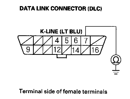 15. Check for continuity between DLC terminal No.7 and body ground.