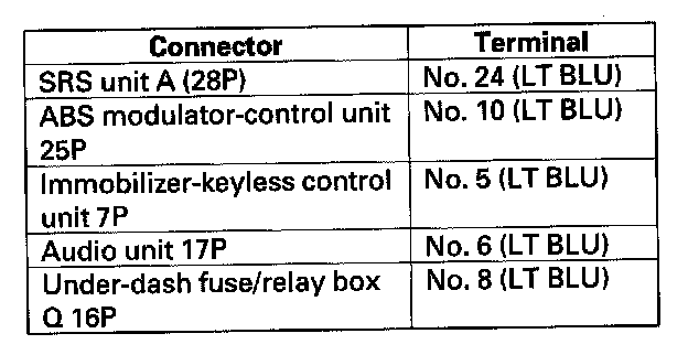 6. Turn the ignition switch ON (II), and watch the SRS indicator.