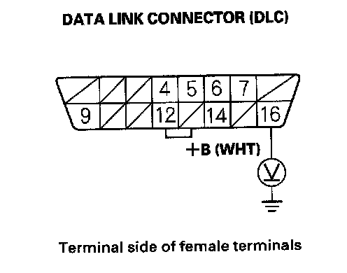 23. Measure voltage between DLC terminal No.16 and body ground.