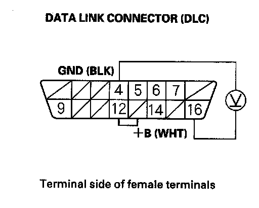 24. Measure voltage between DLC terminals No.4 and No.16.