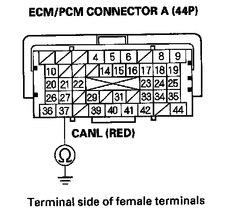 32. Check for continuity between ECM/PCM connector terminal A37 and body ground.