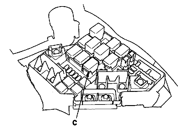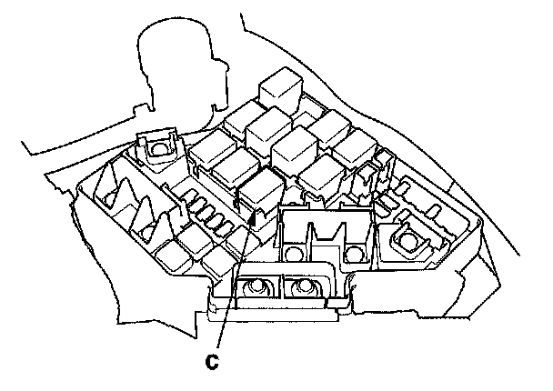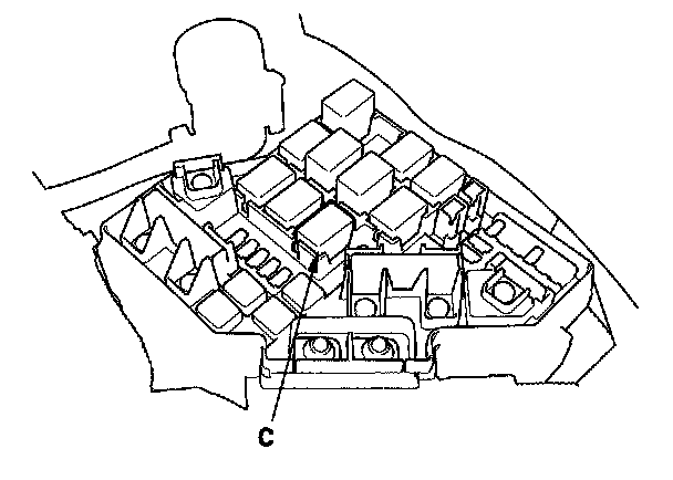 38. Remove PGM-FI main relay 1 (C) from the underhood fuse/relay box.