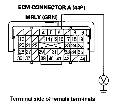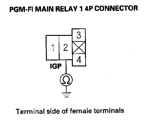 42. Check for continuity between PGM-FI main relay 4P connector terminal No.2 and body ground.