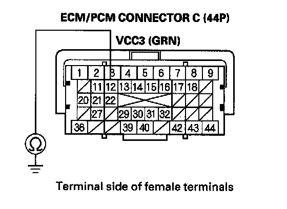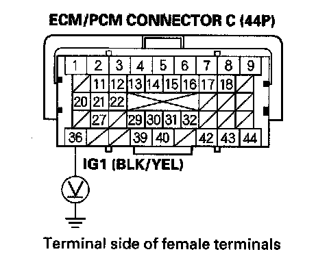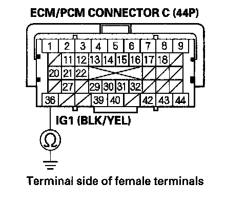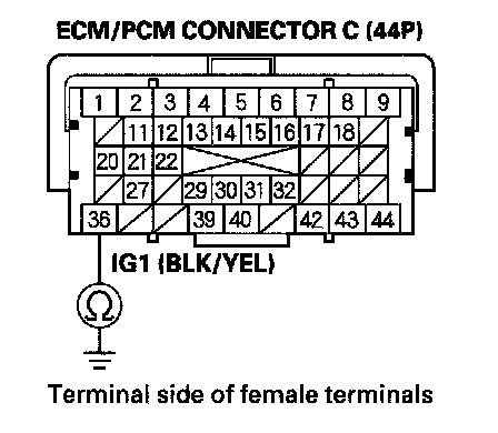 47. Check for continuity between ECM/PCM connector terminal C36 and body ground.