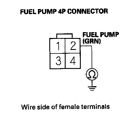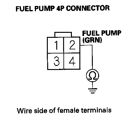 55. Check for continuity between fuel pump 4P connector terminal No.2 and body ground.
