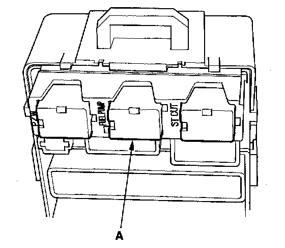 48. Remove PGM-FI main relay 2 (FUEL PUMP) (A) from the under-dash fuse/relay box.