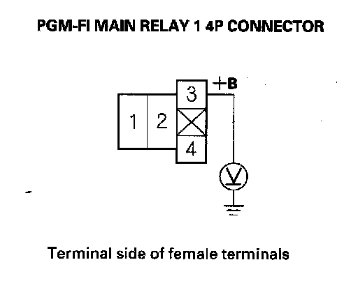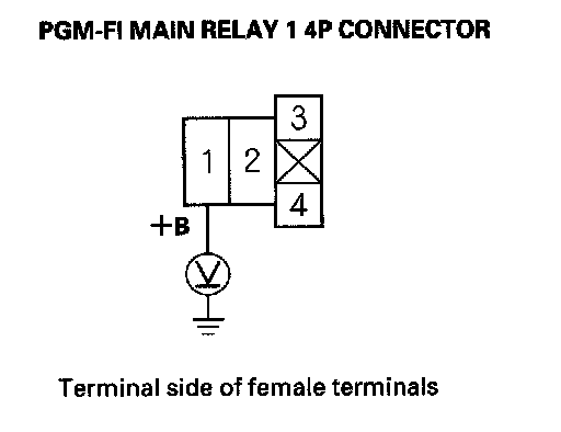 63. Measure voltage between PGM-FI main relay 1 4P connector terminal No.3 and body ground.