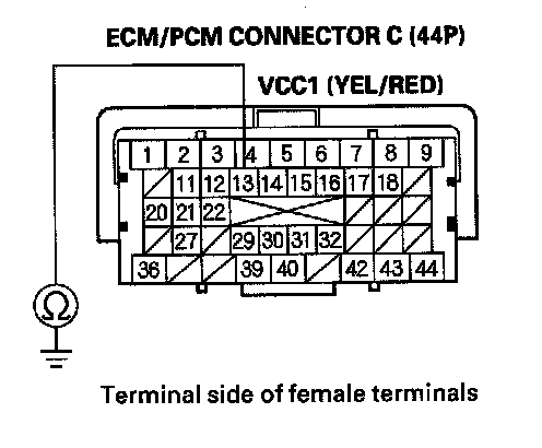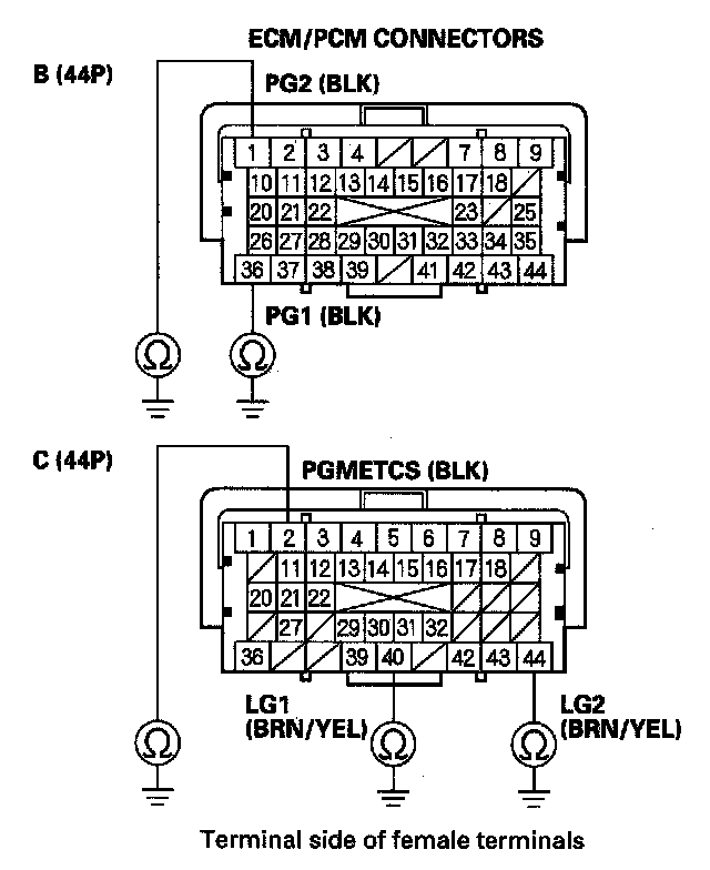 NO - Repair open in the wire between the ECM/PCM (B1, B36, C2, C40, C44) and G101; A/T mode, M/T model.