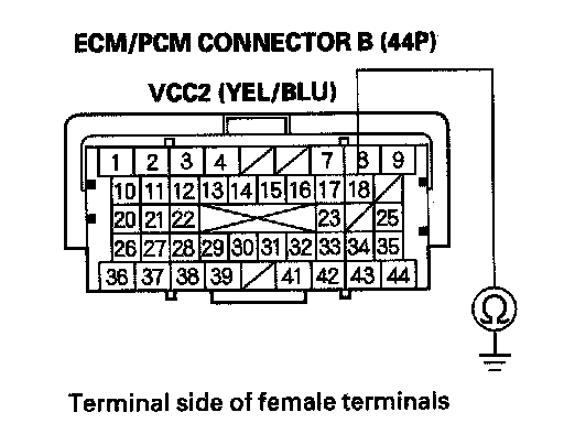 74. Check for continuity between ECM/PCM connector terminal B18 and body ground.