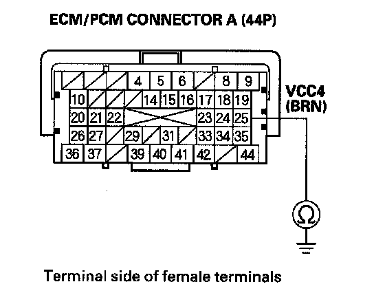 78. Check for continuity between ECM/PCM connector terminal A25 and body ground.