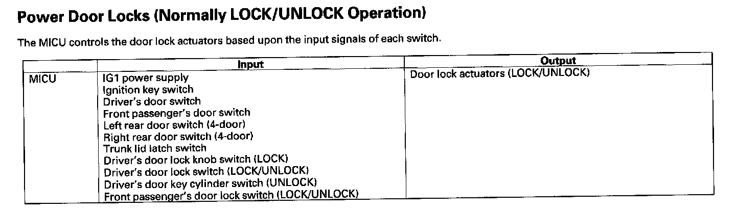 Power Door Locks (Normally LOCK/UNLOCK Operation)