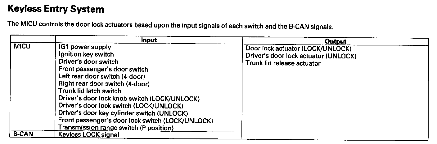 The MICU (built into the under-dash fuse/relay box) is one of the B-CAN components. The MICU controls many systems related to the body controller area and a security system, and also works as a gateway to diagnose the other B-CAN connected ECUs with the HDS.