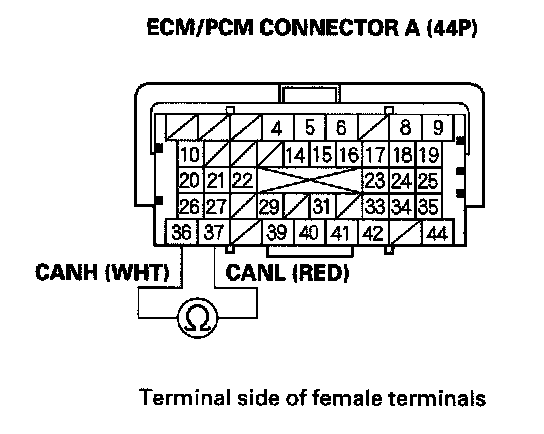 4. Measure resistance between ECM/PCM connector terminals A36 and A37.