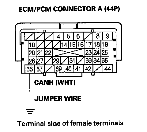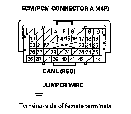 13. Remove the jumper wire from ECM/PCM connector A (44P).