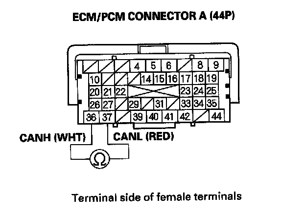 8. Check for continuity between ECM/PCM connector terminals A36 and A37.