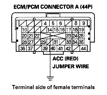 13. Momentarily connect ECM/PCM connector terminal A14 to body ground with a jumper wire several times.