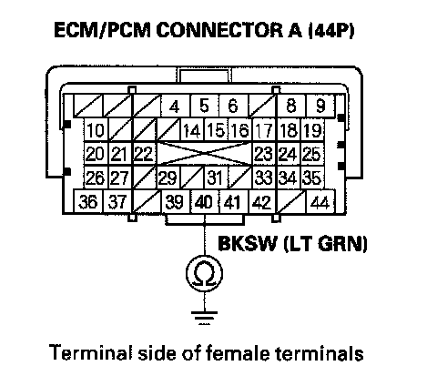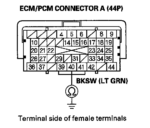 8. Check for continuity between ECM/PCM connector terminal A40 and body ground.