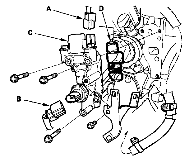 4. Install the parts in the reverse order of removal with a new rocker arm oil control valve filter (D).