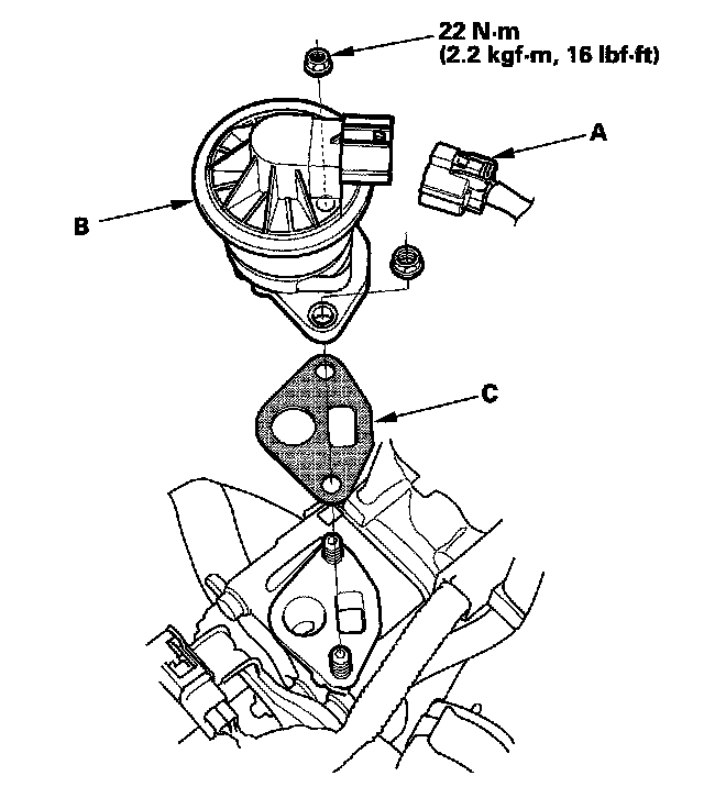 3. Remove the EGR valve (B).